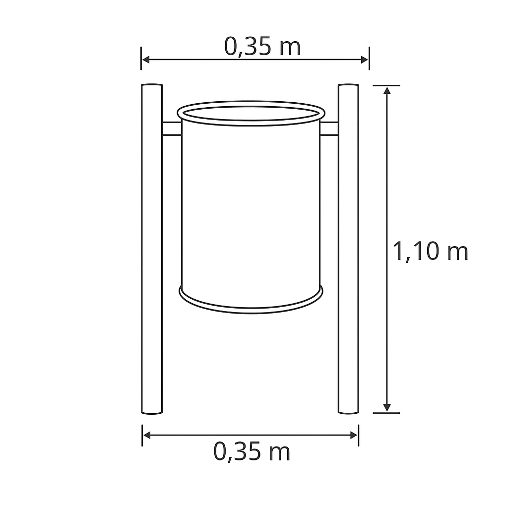 El Bote con Columpio JIMBAS-03 es un contenedor urbano de diseño funcional, ideal para parques, jardines, plazas, escuelas y vialidades. Fabricado en lámina lisa de acero y montado sobre una estructura tubular metálica con sistema tipo columpio, permite un vaciado fácil y rápido sin necesidad de desmontar el contenedor.
