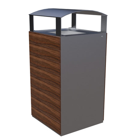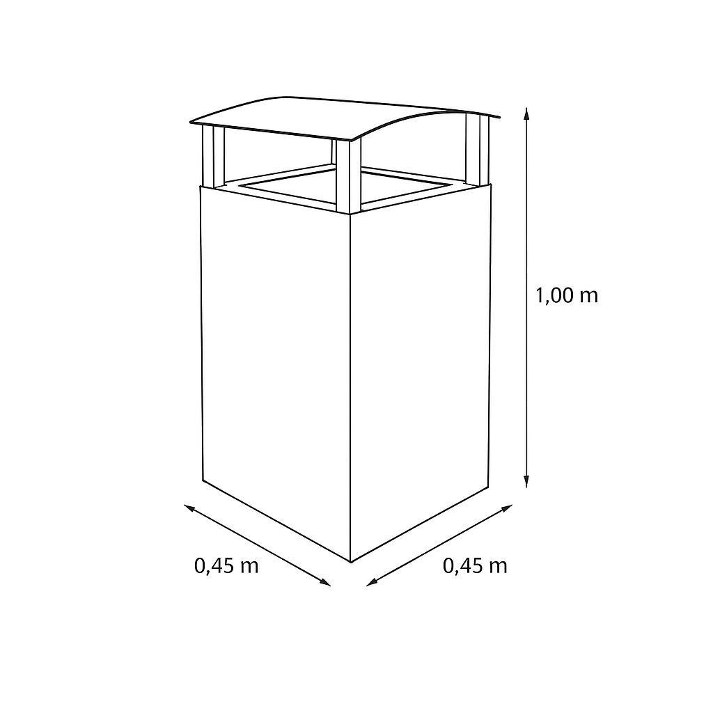 La parte superior incluye una tapa tipo visera que protege el interior del bote contra la lluvia y mantiene una estética limpia. Su amplia apertura facilita el depósito de residuos, y el contenedor interno desmontable permite un vaciado práctico y eficiente.