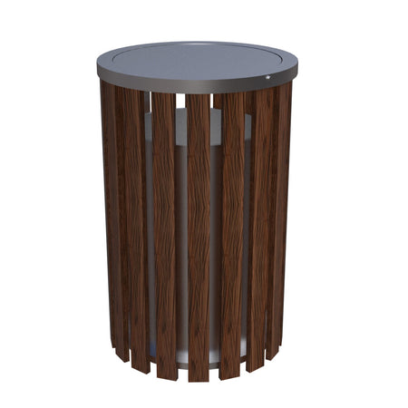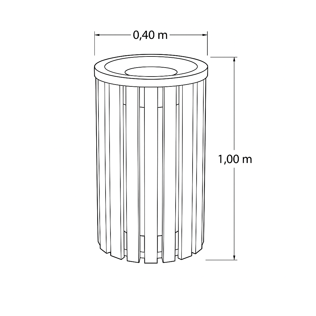 El Bote de Basura Santorini JIMBAS-33 es un contenedor urbano de estilo contemporáneo que combina estructura metálica y recubrimiento en plastimadera, logrando un equilibrio entre resistencia, estética y bajo mantenimiento. Diseñado para entornos exteriores, su forma cilíndrica y su acabado tipo madera lo hacen ideal para plazas, parques, zonas residenciales, jardines y espacios comerciales.