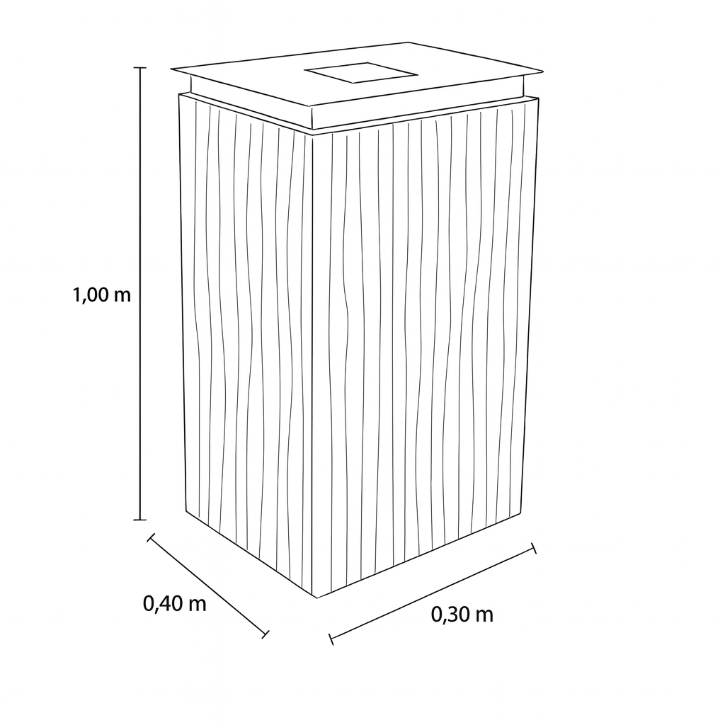 El Bote de Basura Zonte JIMBAS-24 es un contenedor urbano de diseño minimalista, construido con materiales de alta resistencia y un acabado estético que combina acero galvanizado y paneles de plastimadera. Su estructura robusta y su apariencia contemporánea lo hacen ideal para plazas, parques, jardines, fraccionamientos, centros comerciales y desarrollos corporativos.