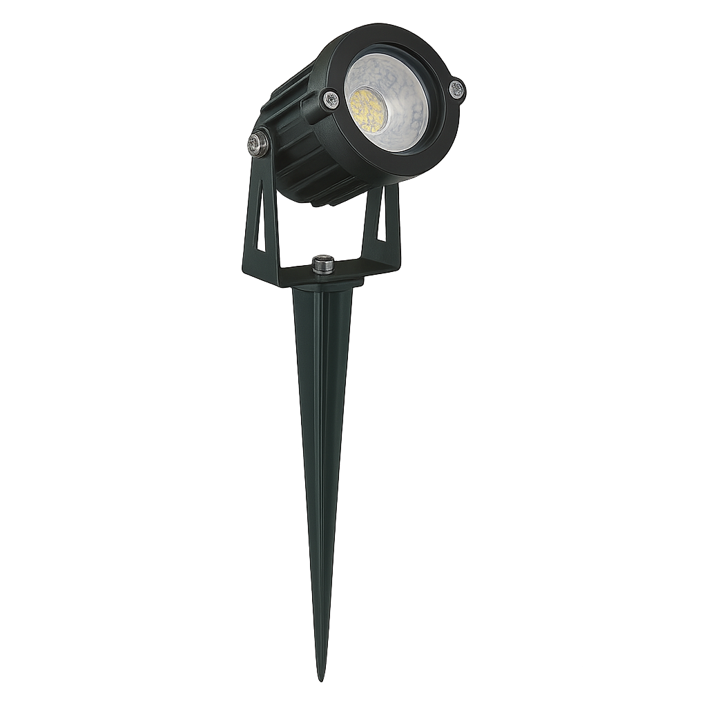 Estaca para Jardín pensada para proyectos de iluminación exterior que buscan resaltar detalles paisajísticos, áreas verdes o caminos con luz cálida y focalizada. Su diseño funcional y compacto con bracket y estaca incluidos permite una instalación sencilla y segura en distintas superficies de jardín.