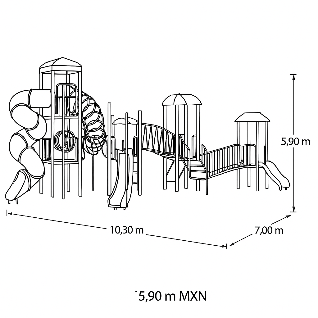 El Juego Infantil EVEREST TM040P es una estructura recreativa de gran altura y capacidad, ideal para parques de gran afluencia, unidades deportivas y centros recreativos. Diseñado con un enfoque arquitectónico vertical, combina toboganes de distintos niveles, torres conectadas y rampas elevadas, brindando una experiencia de juego segura, estimulante y visualmente impactante.