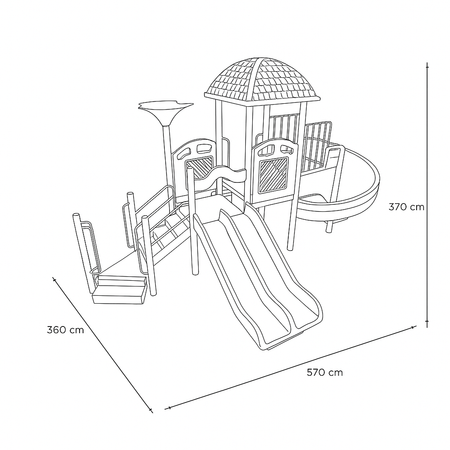 El módulo infantil MOCAMBO TM017P es una estructura recreativa de alta resistencia y atractivo diseño, pensada para uso continuo en parques, escuelas y áreas públicas. Incorpora dos plataformas interconectadas mediante rampas y escaleras antideslizantes, con toboganes de doble salida y un tobogán espiral lateral. Su diseño ergonómico fomenta la actividad física y el juego seguro, mientras que la techumbre principal protege contra los rayos UV y las condiciones climáticas adversas. Todos los bordes están redondeados para evitar lesiones.