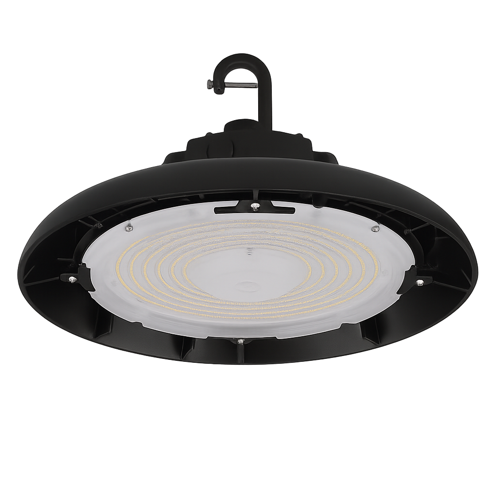 Gracias a su diseño robusto y cuerpo en aluminio negro mate, esta luminaria garantiza una protección IP65, ideal para ambientes industriales y almacenes expuestos a condiciones adversas.