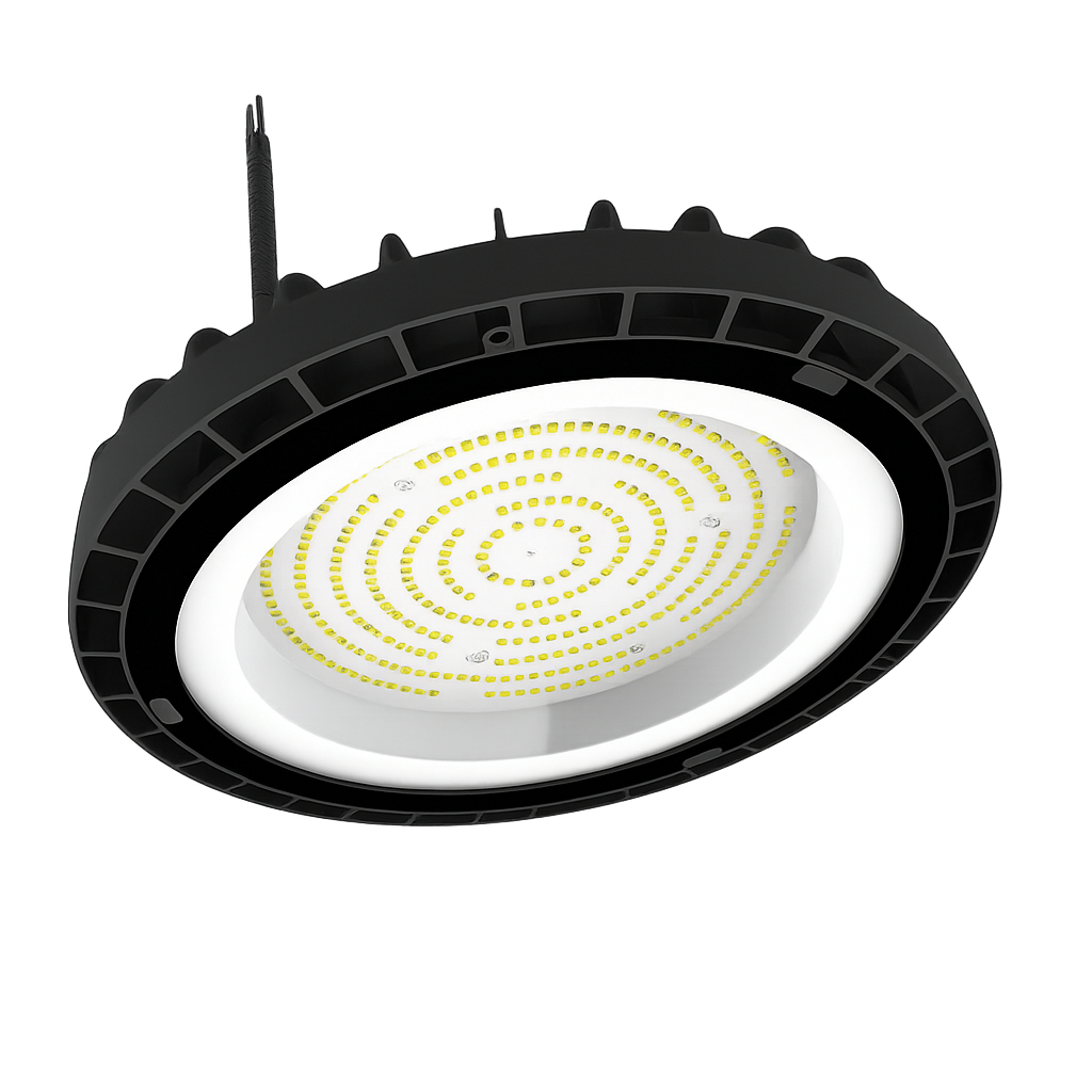 Ofrece un ángulo de apertura de 105 grados , asegurando una distribución uniforme de luz en espacios con alturas entre 12 y 15 metros, tales como naves industriales, bodegas, hangares o centros logísticos. Integra protección contra sobretensiones de hasta 4 kV, lo cual la hace ideal para instalaciones con variaciones eléctricas.