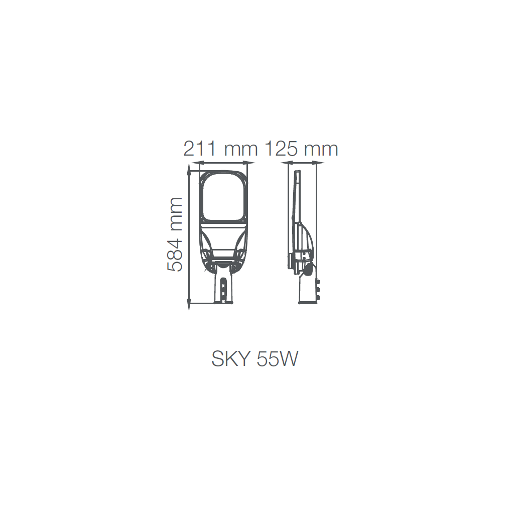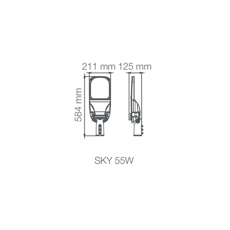 Cuenta con sistema de atenuación 1-10 V para ajuste eficiente de la intensidad luminosa. Recomendado para instalación en postes de 6 a 12 metros de altura, con inclinación ajustable de ±15 grados.