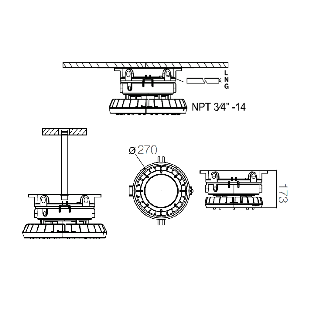 Puede instalarse suspendida, en techo o sobre poste a 25°, lo que permite adaptarse a diversas alturas y configuraciones en espacios complejos. Sus aplicaciones abarcan plantas de generación eléctrica, plataformas petroleras, fábricas de papel, minas, industria alimentaria, plantas de tratamiento de aguas, y zonas con riesgo químico, donde la resistencia a la corrosión y la seguridad eléctrica son fundamentales.