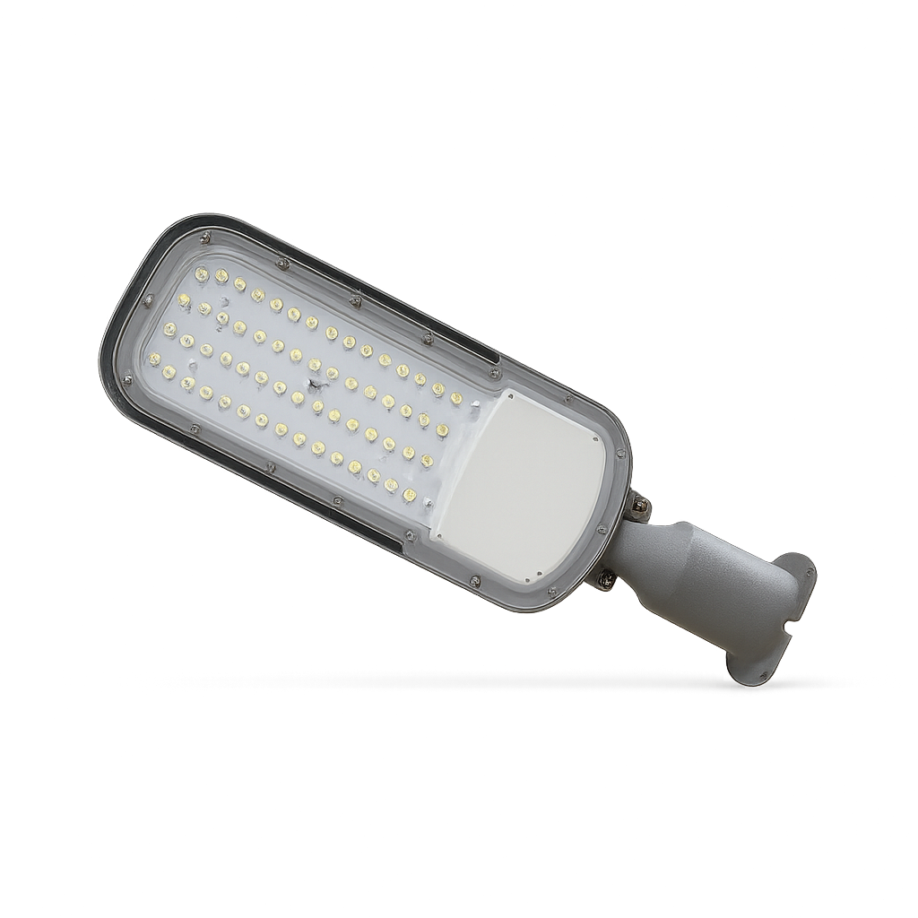 Luminaria suburbana de LED ideal para alumbrado público eficiente y duradero. Con cuerpo de aluminio y óptica de policarbonato, cuenta con fotocelda y receptáculo integrados. Su diseño permite instalación en brazos o postes de 2 ½”, y está optimizado para exterior gracias a su protección IP65, IRC >80 y resistencia a picos de 4kV.