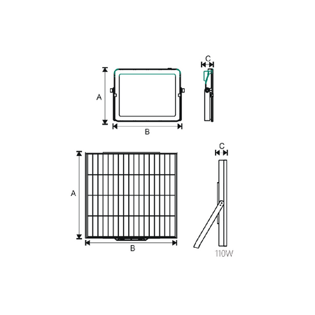 Este modelo ofrece una equivalencia de 400 W, con flujo luminoso inicial de 20 000 lúmenes, temperatura de color 5 000 K y eficacia máxima del módulo LED de 181.8 lm/W, proporcionando iluminación blanca neutra de alta intensidad y excelente uniformidad.