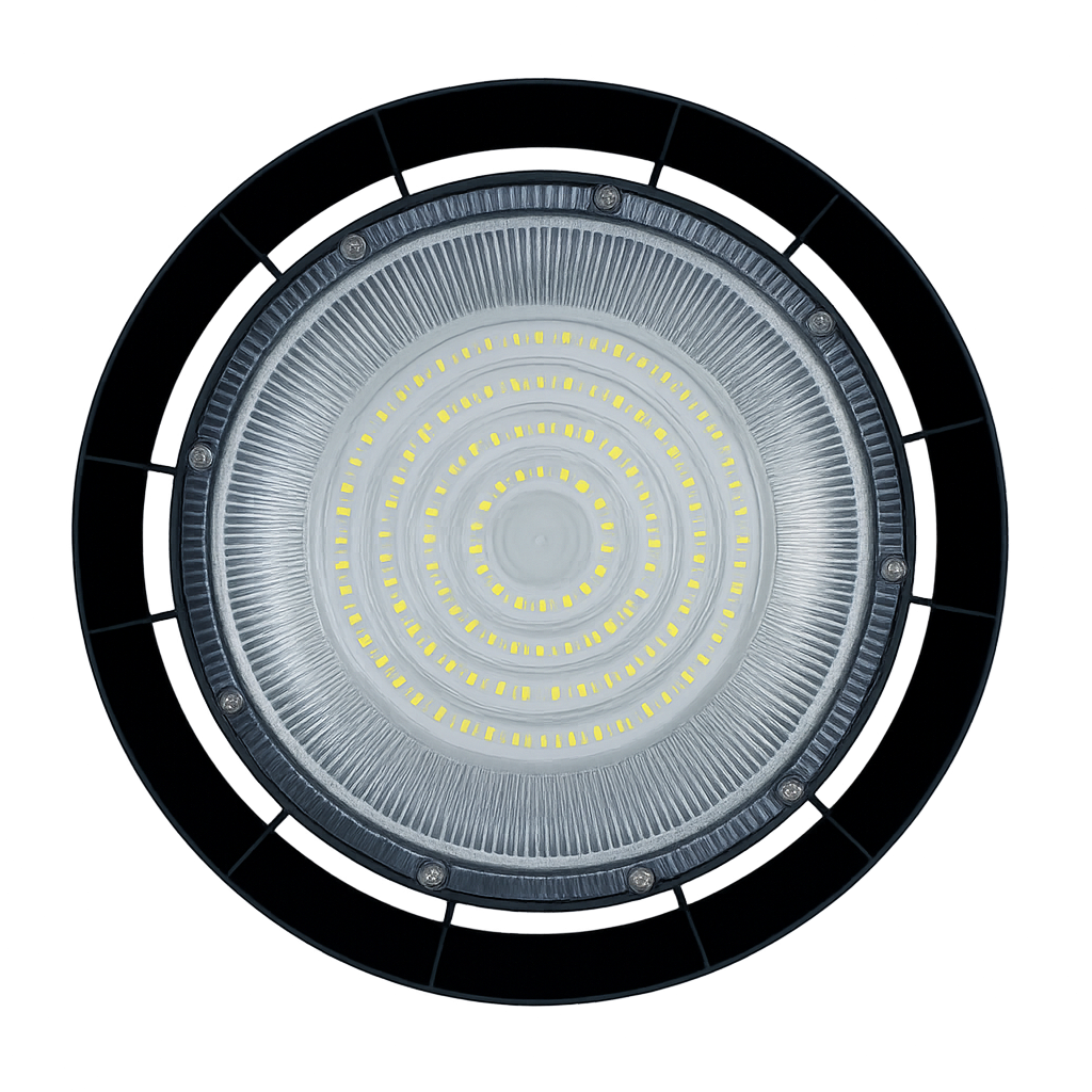 Luminaria UFO LED PHILCO de 300W, diseñada para aplicaciones industriales y comerciales que requieren alta potencia y máxima eficiencia lumínica. Construida con cuerpo de aluminio y óptica en policarbonato transparente, ofrece un desempeño confiable en exteriores y entornos exigentes.