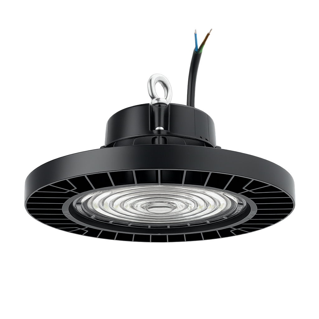 Diseñado para naves industriales, almacenes, talleres, estaciones logísticas y bodegas. Su estructura compacta y eficiente lo convierte en una solución robusta para proyectos que requieren iluminación intensa, uniforme y de bajo mantenimiento.