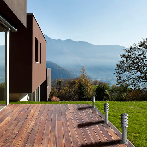 Amsterdam H-430/S es un mini poste decorativo de exterior diseñado para iluminar senderos, jardines y accesos peatonales con un estilo moderno y funcional. Fabricado en aluminio satinado de alta resistencia, combina una estructura sólida con un diseño arquitectónico de líneas horizontales que protegen el difusor y distribuyen la luz de manera uniforme.