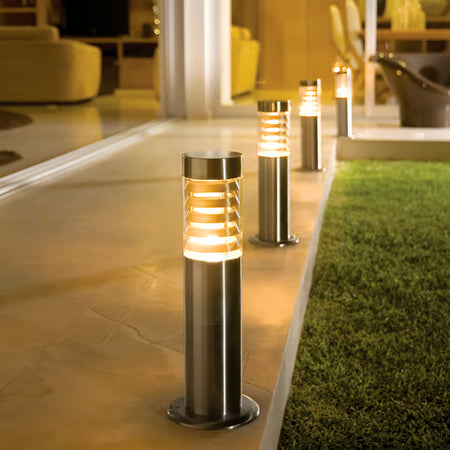 Gracias a su base E27, permite el uso de diversas lámparas LED intercambiables, lo que facilita el mantenimiento y la personalización del flujo luminoso según las necesidades del proyecto. Es ideal para jardines, caminos, accesos o terrazas que requieran iluminación ambiental y estética.