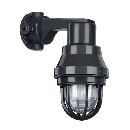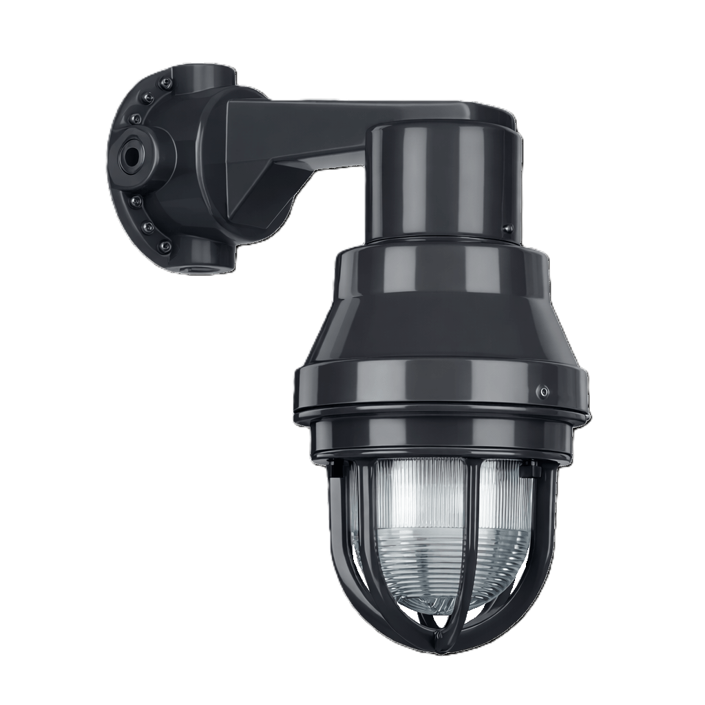 Este modelo incorpora recubrimiento exterior de PVC y recubrimiento interior de uretano púrpura, brindando una protección superior contra la corrosión y el deterioro químico, incluso en entornos altamente agresivos. Está diseñado para montarse con el portalámparas orientado hacia abajo, proporcionando una distribución adecuada del equipo y un desempeño confiable en aplicaciones murales.
