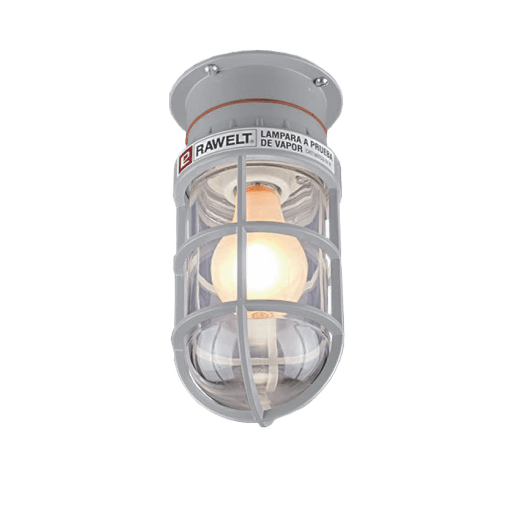 Este modelo integra portalámparas de porcelana, vaso de cristal resistente al choque térmico y guarda metálica, proporcionando protección mecánica y durabilidad en instalaciones industriales de uso continuo. Su diseño cerrado y sellado protege de manera integral el portalámparas, la lámpara instalada y el cableado, asegurando un desempeño confiable en interiores y exteriores.