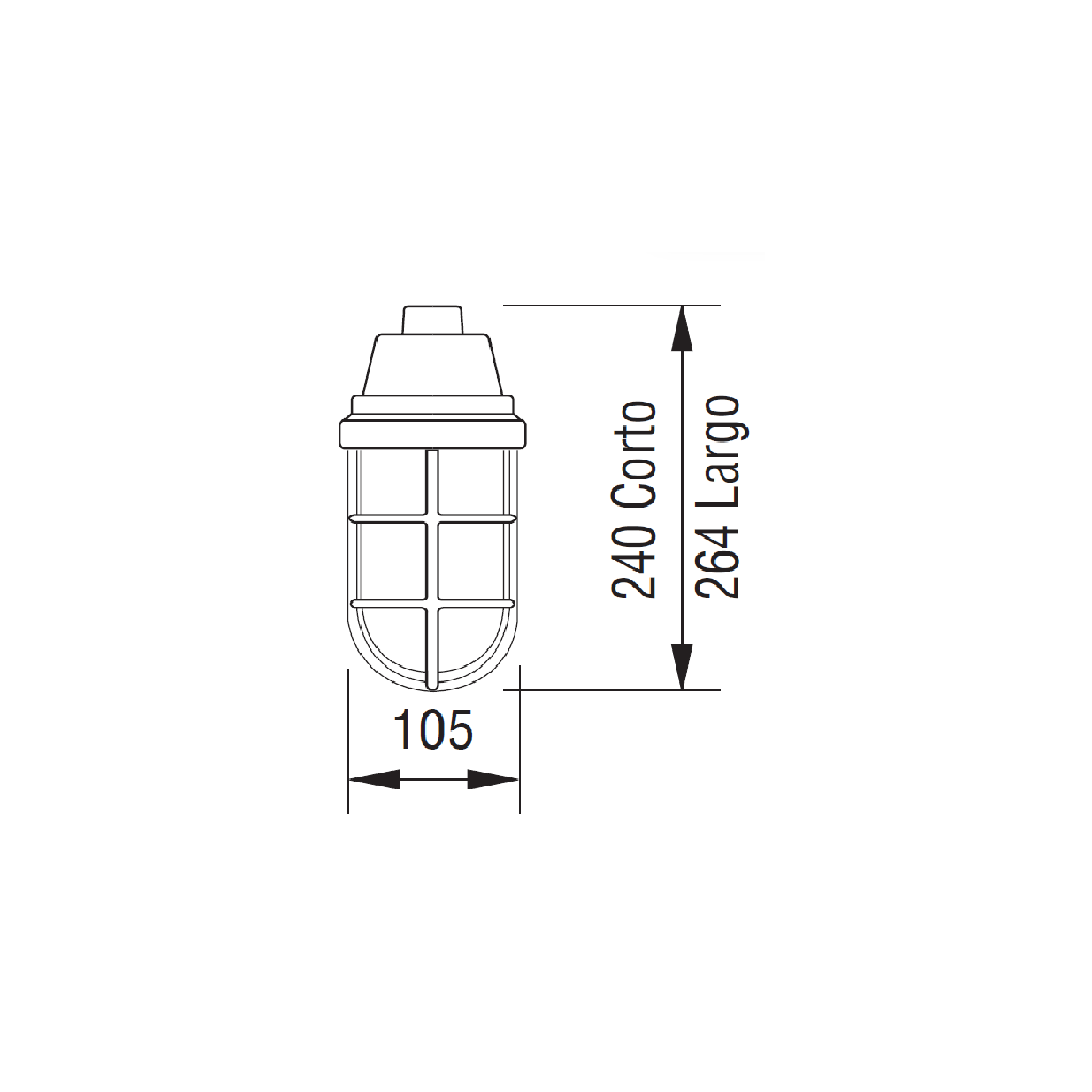 Este modelo incorpora portalámparas de porcelana, vaso de cristal resistente al choque térmico y guarda metálica, proporcionando protección mecánica al conjunto y prolongando su vida útil en ambientes industriales exigentes. La configuración de montaje suspendido lo hace ideal para áreas con alturas considerables o donde se requiere una iluminación descendente controlada.