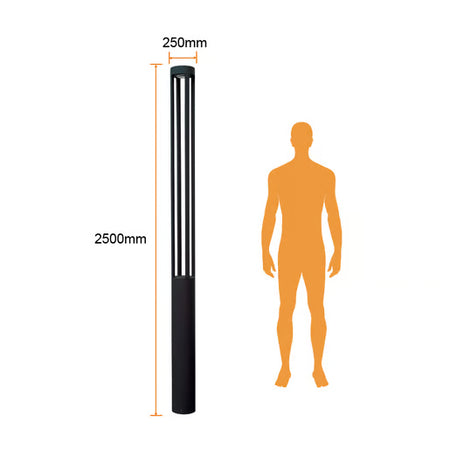 Fabricado en aluminio extruido con recubrimiento electrostático negro, ofrece alta resistencia a la corrosión y una vida útil prolongada incluso en ambientes húmedos o costeros. Integra un módulo LED de 25 W que emite luz cálida brillante (3000 K), generando una iluminación ambiental confortable y eficiente. El difusor acrílico vertical contribuye a un efecto lumínico suave, reduciendo el deslumbramiento y mejorando la percepción visual nocturna.