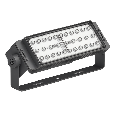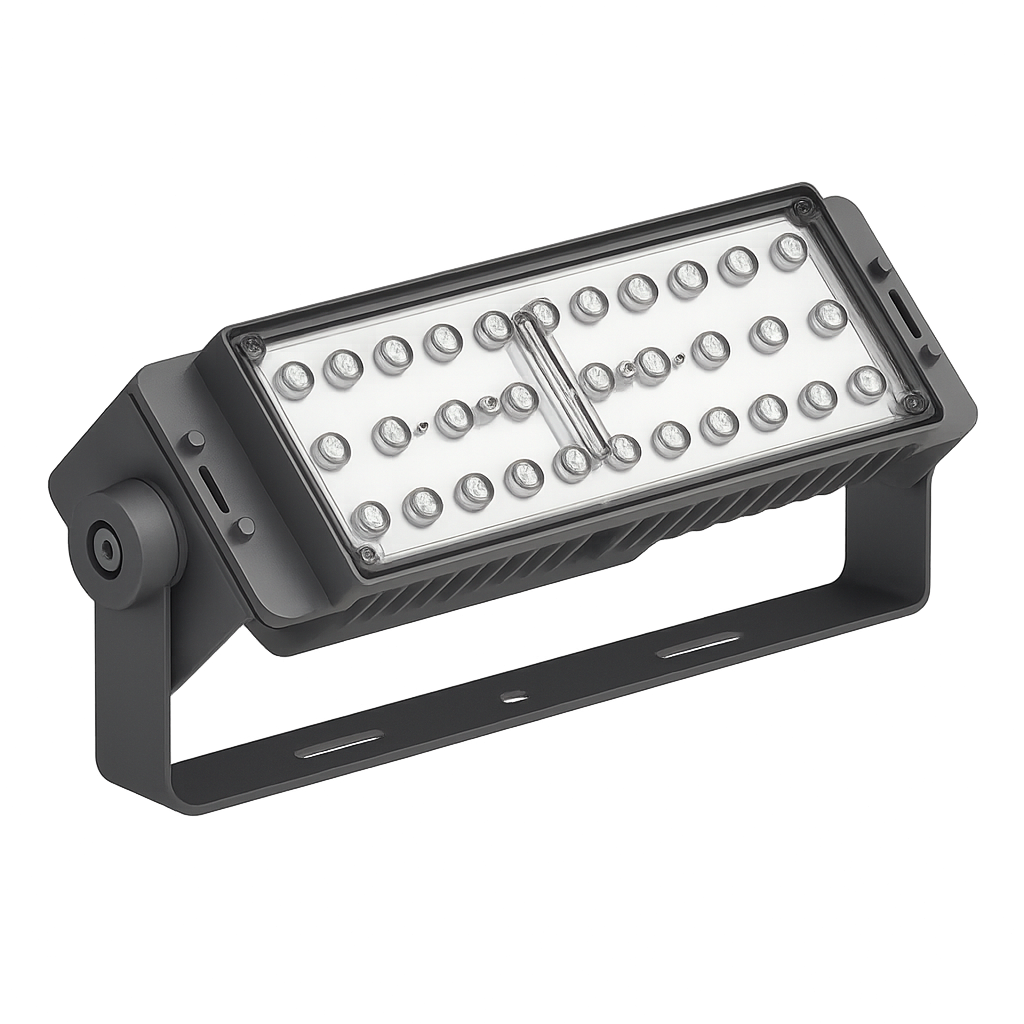 Proyectores industriales de alto rendimiento ideales para uso en exteriores. Fabricados en aluminio de alta resistencia, con protección IP66 y diseño modular de una a seis unidades, según el modelo. La estructura optimiza la disipación de calor y maximiza la eficiencia lumínica, permitiendo aplicaciones en áreas como naves industriales, patios de maniobras, estadios, canchas deportivas, zonas de carga, entre otras.