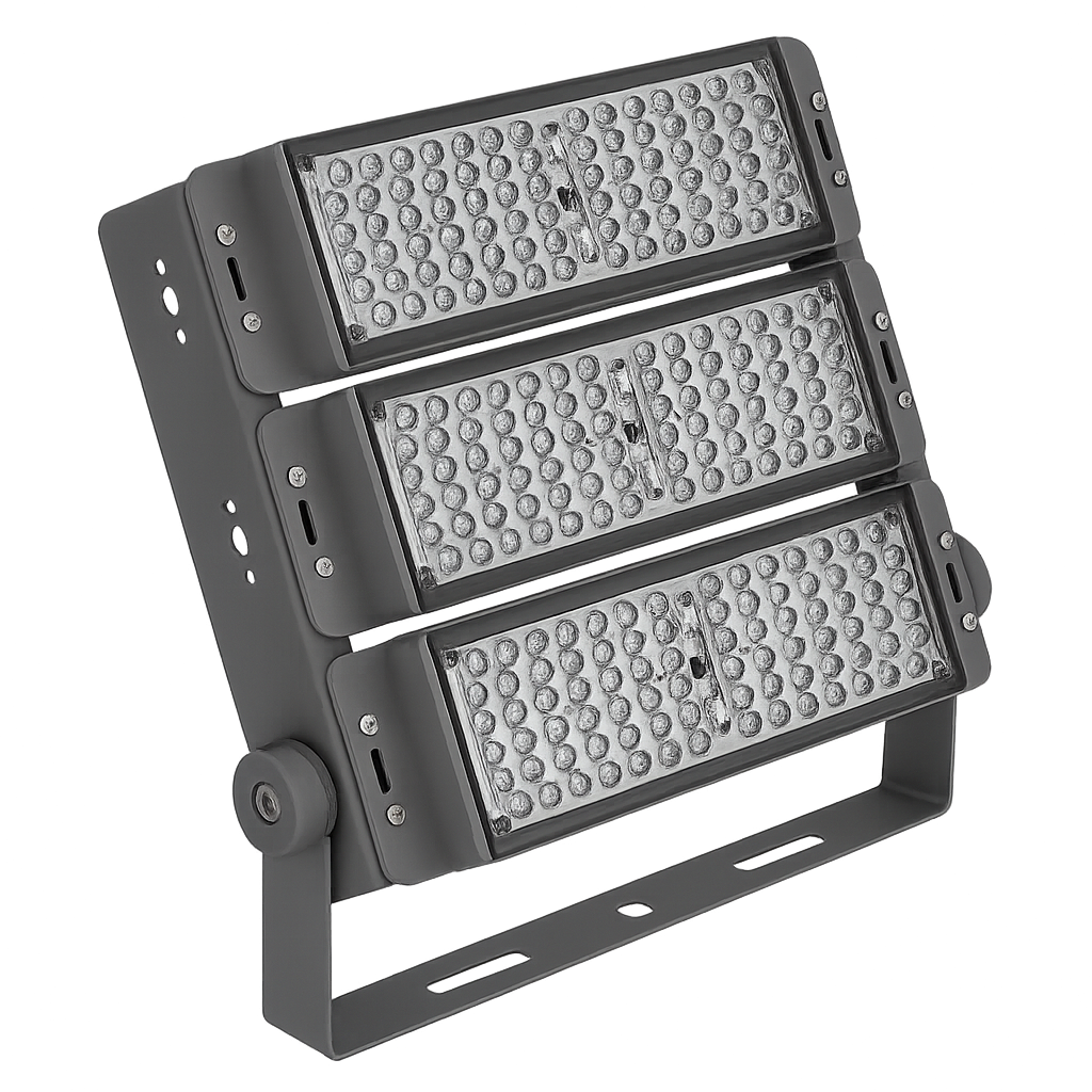 Proyectores industriales de alto rendimiento ideales para uso en exteriores. Fabricados en aluminio de alta resistencia, con protección IP66 y diseño modular de una a seis unidades, según el modelo. La estructura optimiza la disipación de calor y maximiza la eficiencia lumínica, permitiendo aplicaciones en áreas como naves industriales, patios de maniobras, estadios, canchas deportivas, zonas de carga, entre otras.