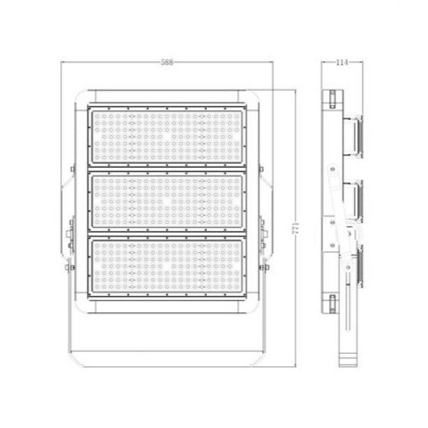 La luminaria Foursquare de Forlighting es un reflector LED de alto flujo luminoso, diseñado para aplicaciones industriales, deportivas y de gran escala que demandan potencia, eficiencia y durabilidad. Fabricada en aluminio de alta resistencia con acabado negro mate, ofrece excelente disipación térmica y resistencia a la corrosión y los agentes ambientales. Integra tres módulos LED de alto desempeño con eficiencia nominal de 165 lm/W, óptica simétrica de 60° y sistema de montaje mediante abrazadera tipo “U”, que permite un ajuste preciso de inclinación. Dispone de protección IP66, resistencia IK08, supresor de picos de 20 kV, factor de potencia mayor a 0.95 y una vida útil estimada de 100,000 horas. Es ideal para estadios, explanadas, parques industriales, áreas de carga y proyectos de alumbrado exterior de gran tamaño.
